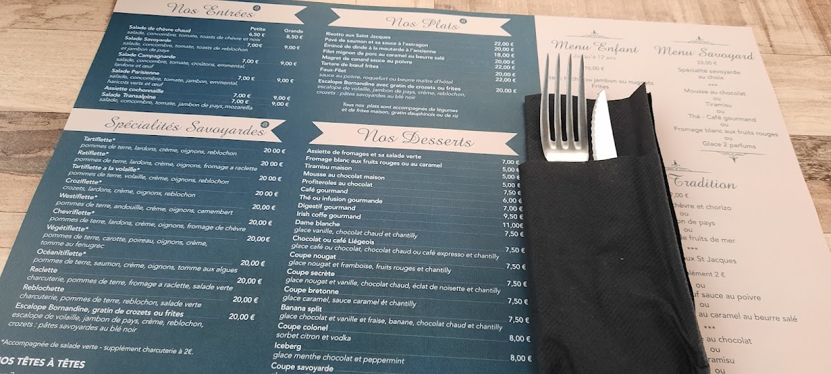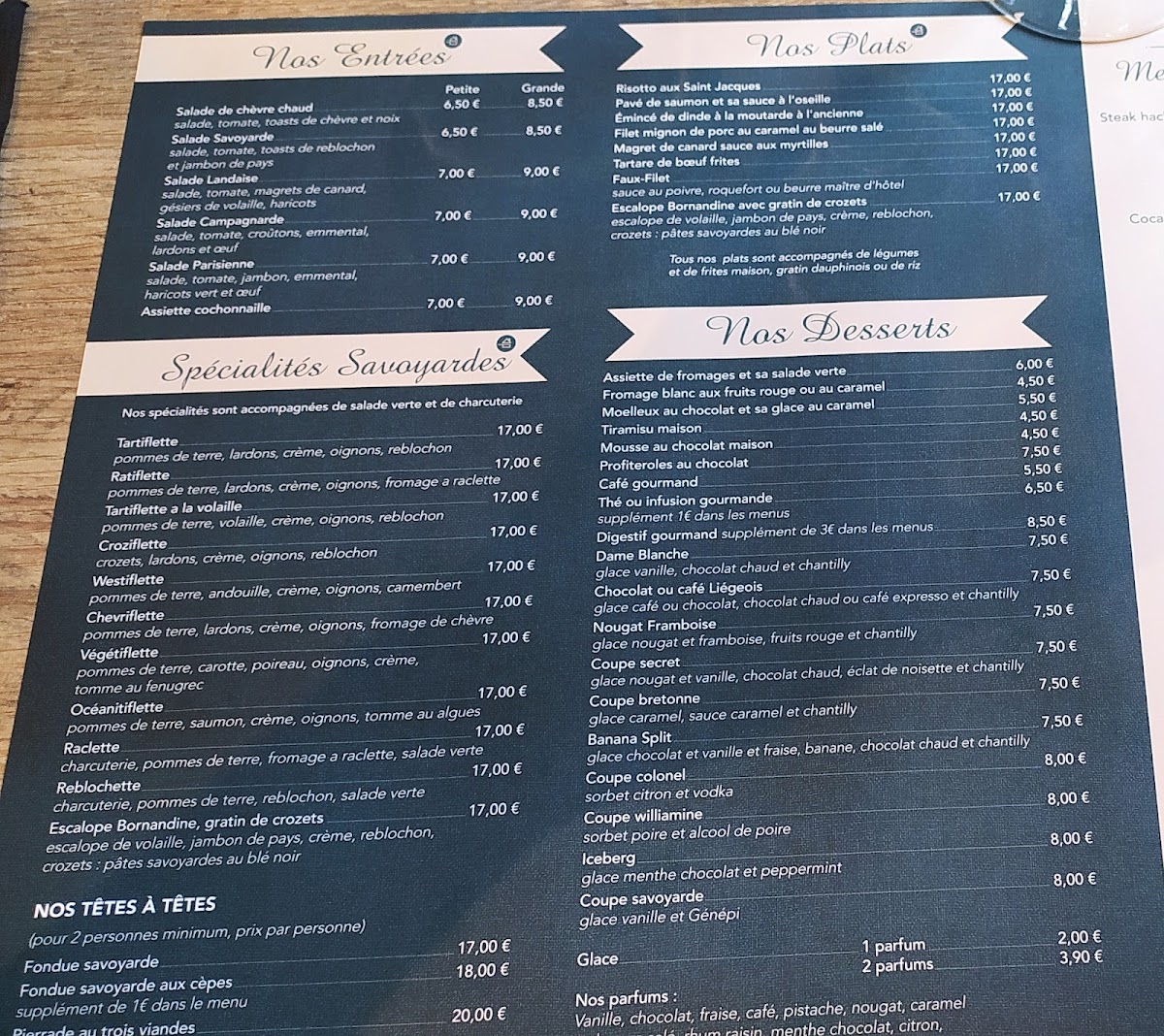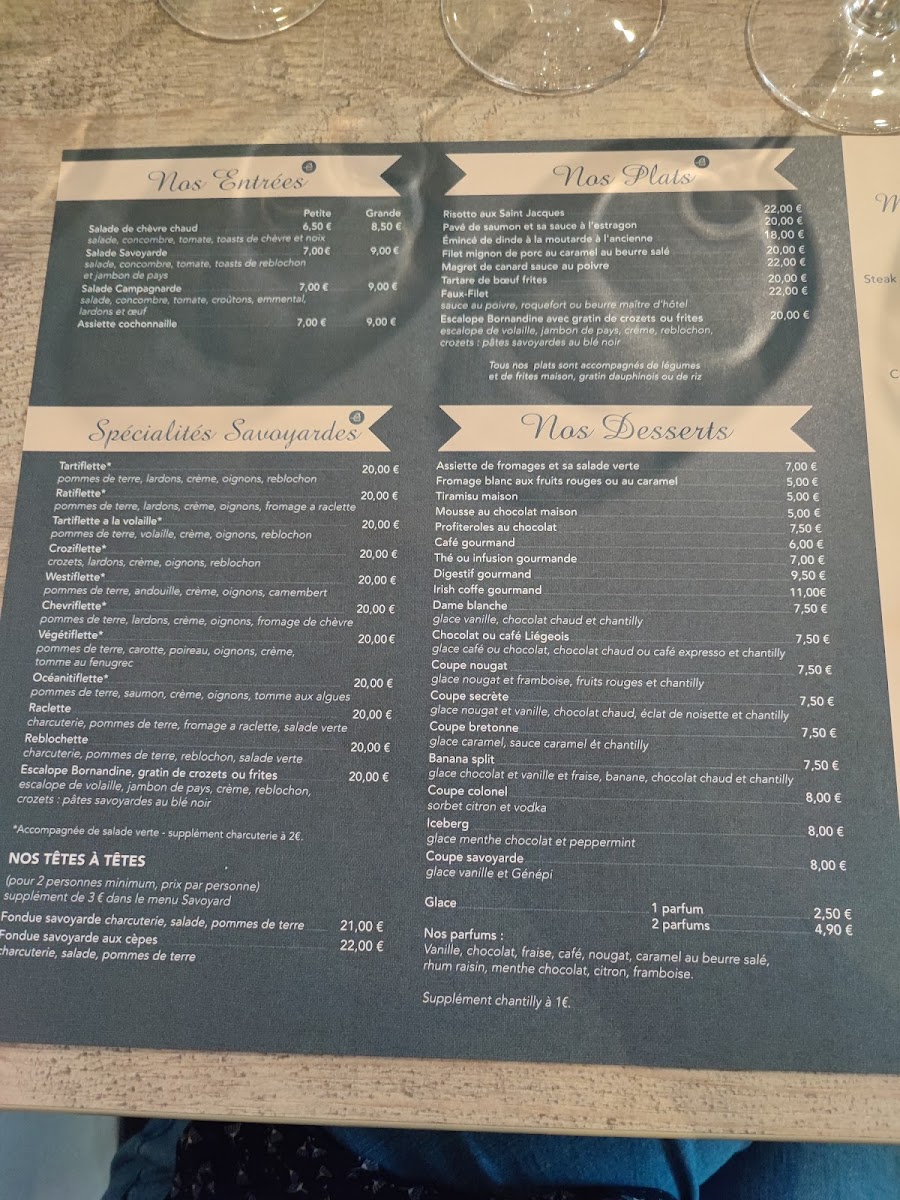 If you’re in the mood for something truly special, the Glace Secret is a mysterious ice cream dish that adds an element of surprise, while the Roblochette rounds off the menu with a delectable dessert that’s rich in flavor and texture. Whether you're looking for comfort food or gourmet options, Les Quatre Pompes offers an exceptional dining experience with a wide array of dishes to suit every taste.